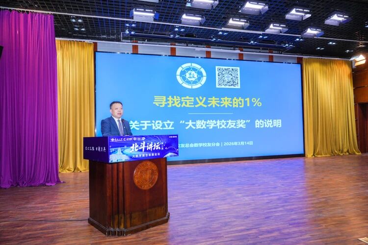 南开校友总会数学校友分会于本期“北斗讲坛”正式倡议并设立“大数学校友奖”。赵宇波介绍,该奖项由校友捐赠资金设立,面向数学科学学院、陈省身数学研究所、组合数学中心、统计与数据科学学院、计算机学院、密码与网络空间安全学院、人工智能学院、软件学院的全体在校生,每年评定一次,旨在“寻找定义未来的1%”,发现和激励综合素质卓越的“大数学”学子,构建“受助—回馈”价值闭环,建立校友与母校的终身情感与事业共同体。