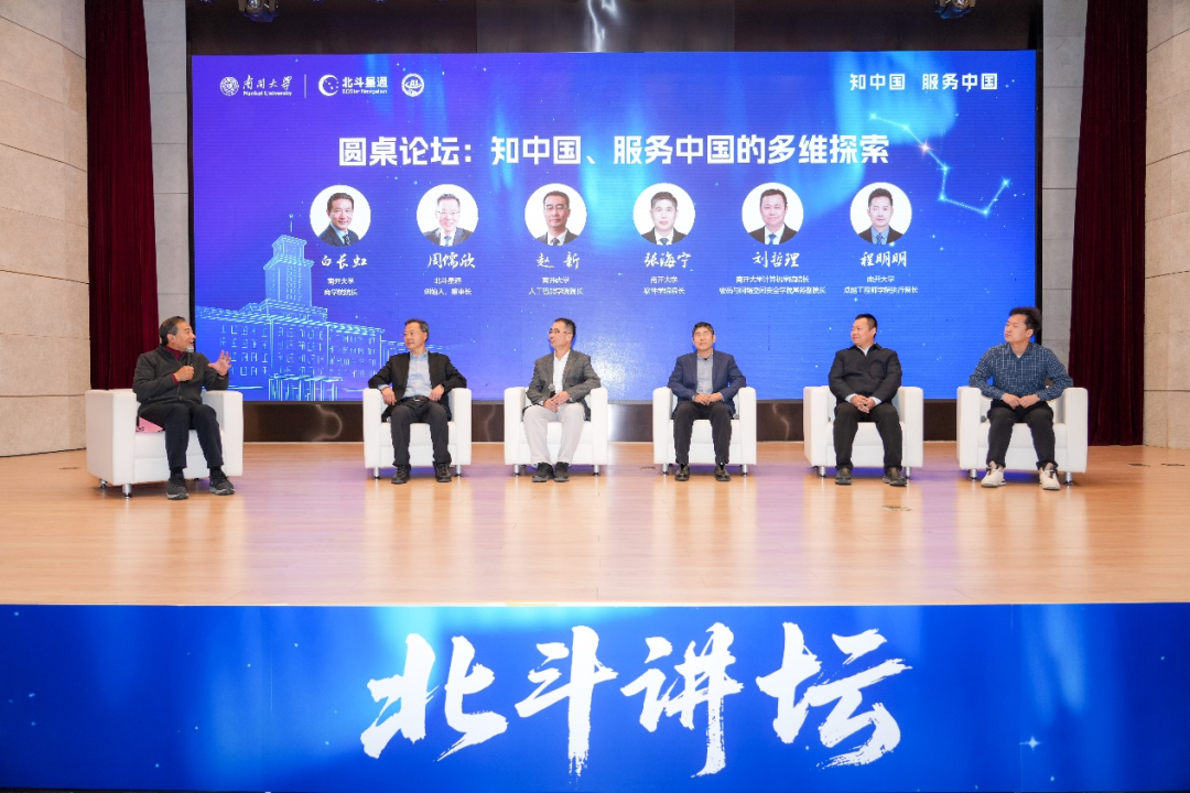圆桌论坛环节由南开大学商学院院长白长虹主持,周儒欣与南开大学人工智能学院院长赵新,软件学院院长张海宁,计算机学院院长、密码与网络空间安全学院常务副院长刘哲理,卓越工程师学院执行院长程明明围绕“知中国,服务中国的多维探索”展开深度对谈。