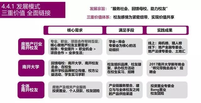 南开房协始终秉持“服务社会、回馈母校、助力校友”的发展宗旨,实现了面向“房地产行业南开校友-全体南开校友-南开大学“的三重价值体系。