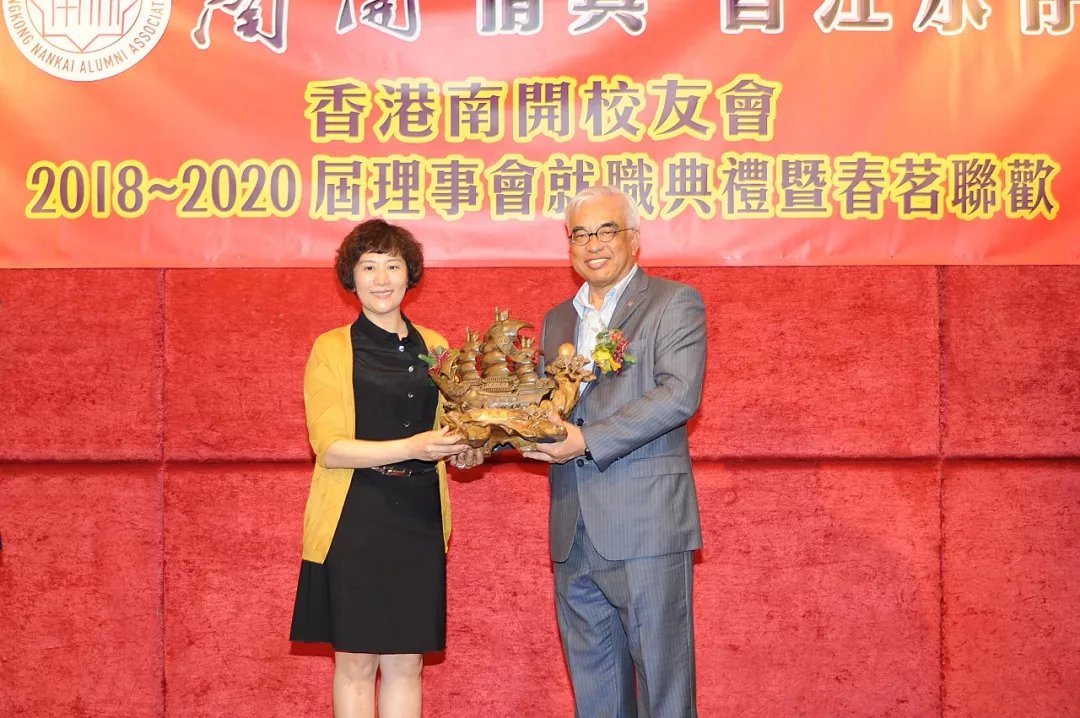 最后,南开大学杨克欣副书记、副校长上台致辞。杨副校长向新一届理事会的就任表示祝贺,向全体在港南开人致以美好的祝福。她表示,南开香港校友会多年来在热心服务校友、支持特区繁荣稳定、扩大母校影响力等方面做出了突出贡献。