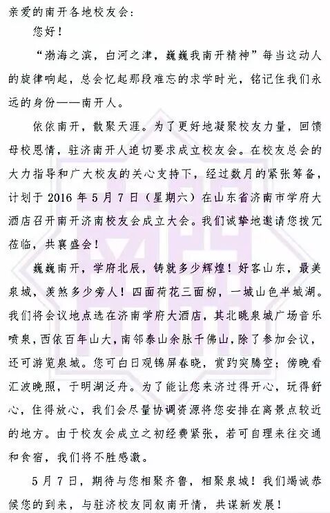 济南校友会致各地校友会邀请函