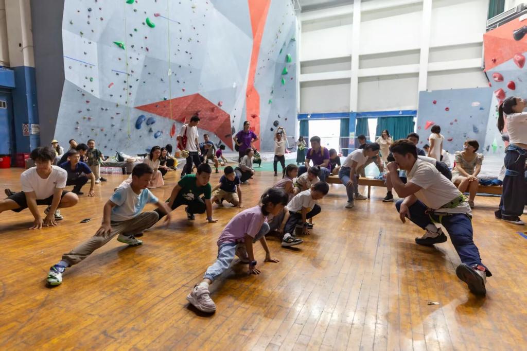 参观完毕后大家移步地大攀岩馆。首先,地大体育部朱军书记向校友们致以热烈欢迎,并向校友们详细介绍了地大攀岩馆和相关队伍建设:地大攀岩馆是亚洲规模最大、标准最高、设施最全面的室内攀岩馆,除拥有标准岩壁外,还拥有攀岩专项训练房,并多次承办各类高标准赛事;地大攀岩队也涌现了一批全国冠军。随后,校友们在专业教练的指导下进行热身准备。热身完毕后,在做好全程绳索保护、遵守安全指令的前提下,按照校友子女优先的原则,大家有序分成两列逐一进行攀岩体验。大家积极尝试,激发自身专注力与目标感,勇于突破心理舒适区,超越自我,多数体验者顺利攀顶,成功解锁最新的潮酷体能训练方式。