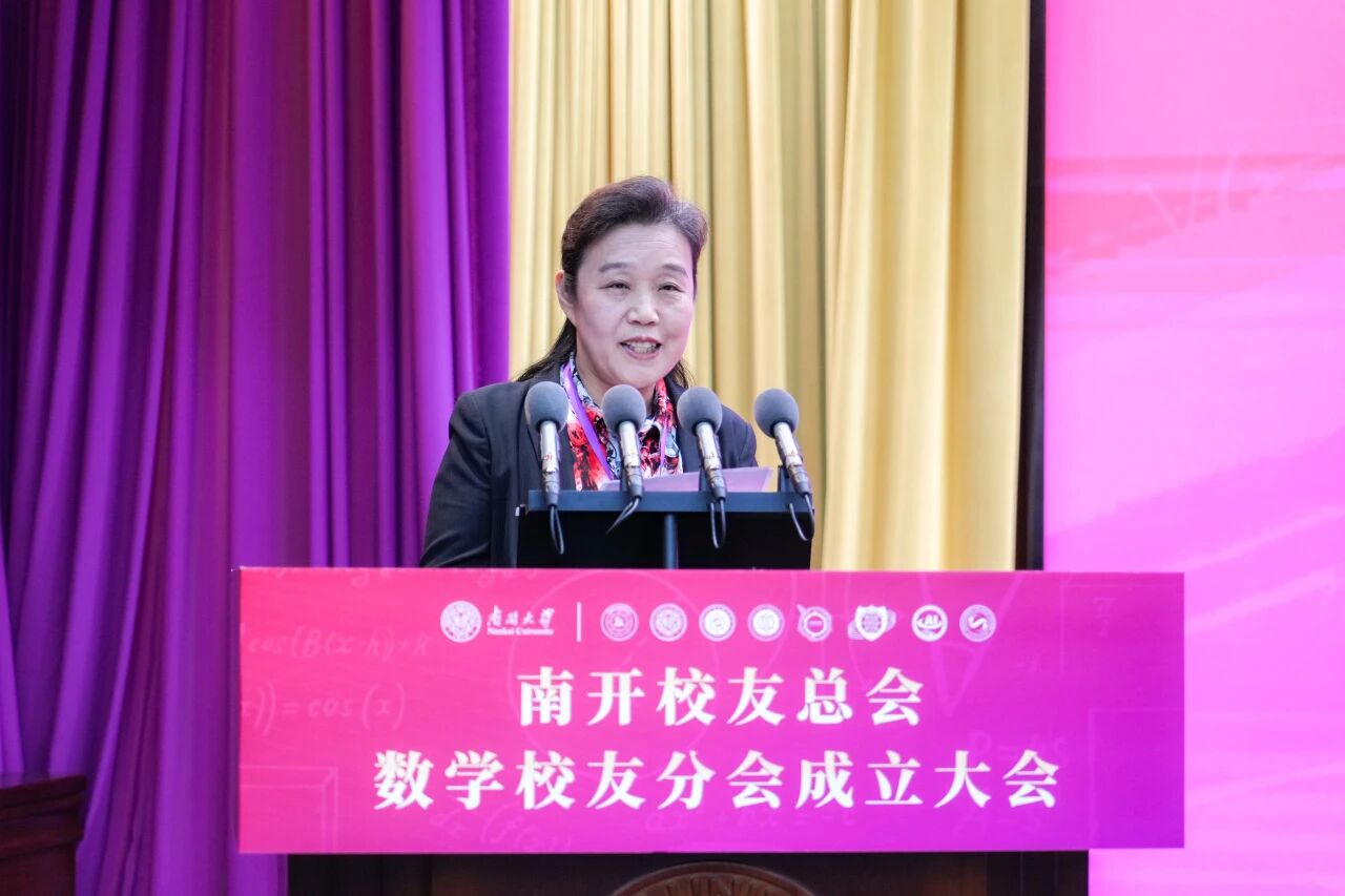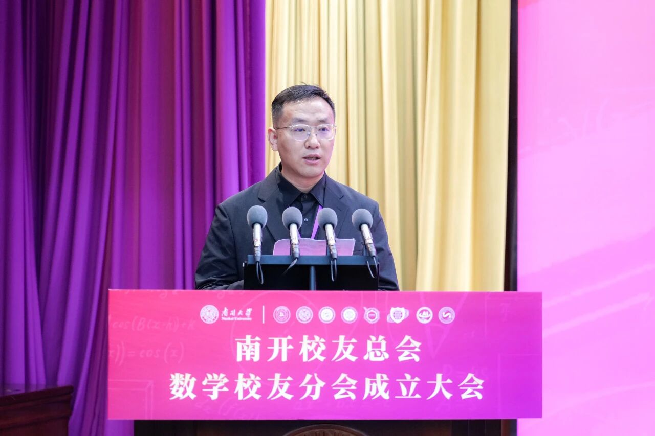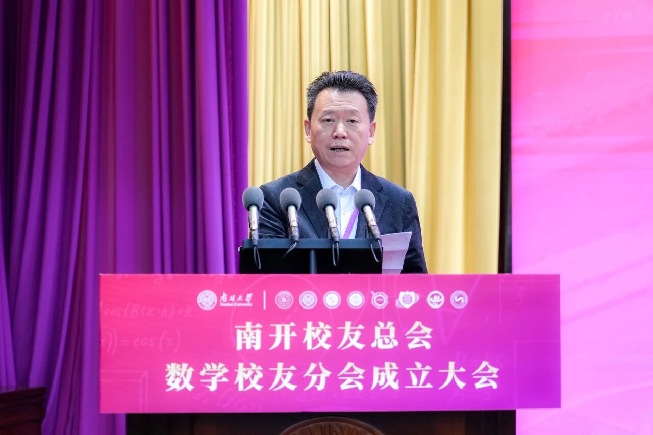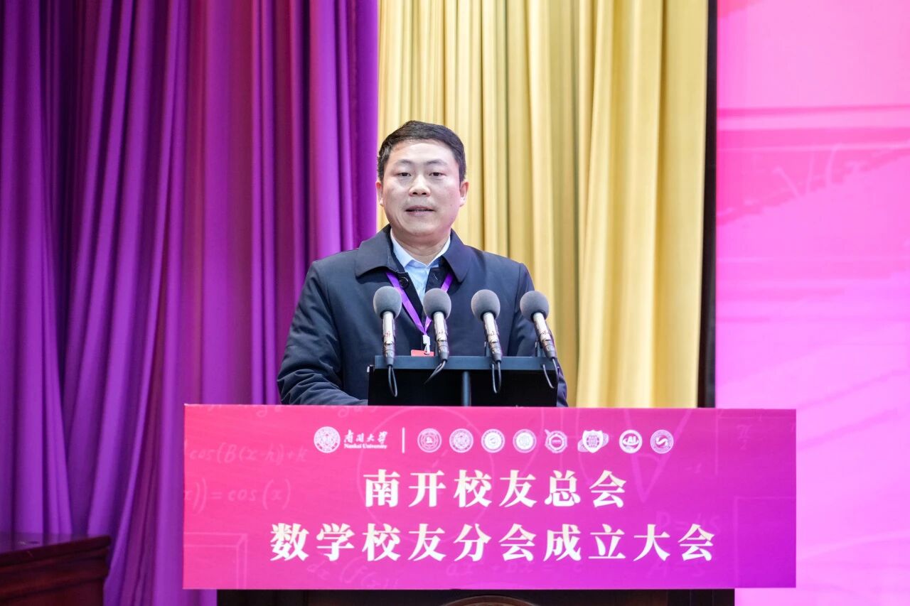 白承铭在致辞中代表学校对分会成立表示祝贺,他说,南开数学底蕴深厚,自姜立夫先生创系以来,历代学人承前启后、薪火相传,形成了严谨治学、爱国奉献的优良传统。数学校友分会的成立,是凝聚全球校友力量、推动学科高质量发展的重要举措。希望分会充分发挥“纽带”作用,推动校企合作、校地合作、国际交流,支持学科建设、人才培养与科研创新,形成“校友反哺学科、学科成就校友”的良性循环,引领广大师生校友,聚焦国家重大需求,瞄准“卡脖子”问题中的数学基础与关键技术,开展有组织、有深度的科研攻关,为建设教育强国贡献南开数学人的智慧与力量。
