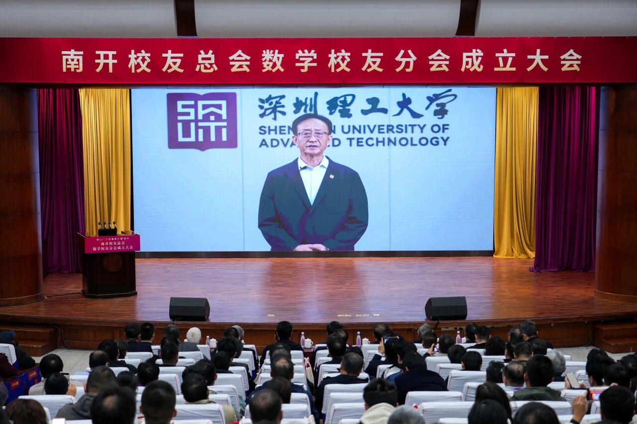 1980级数学系校友、深圳理工大学校长樊建平通过视频的方式向数学校友分会成立表示祝贺。他指出,南开数学赋予学子探索世界本质的逻辑根基与应对复杂问题的思维框架,这种核心能力使校友们在不同领域都能展现卓越洞察力。面向人工智能时代,期待南开数学人在AI模型、数据科学等前沿领域及国家战略需求方面发挥更大作用。