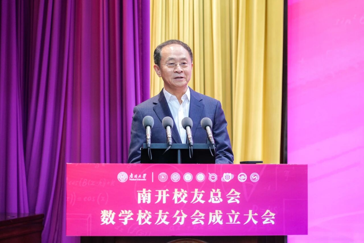 马志明表示,近年来,南开数学不仅在传统优势领域持续深耕,更在交叉学科中开辟出新天地,逐步构建起包括统计与数据科学在内的“大数学”共同体的发展格局。数学校友分会的成立恰逢其时,必将成为汇聚智慧、共促发展的重要平台,助力学科建设再上新台阶,推动数学科学与产业、社会需求的深度结合,让南开的数学智慧成为服务国家战略、驱动社会进步的“孵化器”。