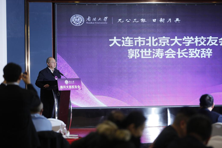 兄弟校友会代表先后致辞。南开辽宁校友会负责人张晓天校友表达了对大连校友会新一届班子的祝贺与期待。大连市北京大学校友会会长郭世涛回顾了西南联大时期三校同舟共济的光荣历史,希望未来继续加强联动,共叙手足情谊,为大连发展汇聚一流学府的才智合力。