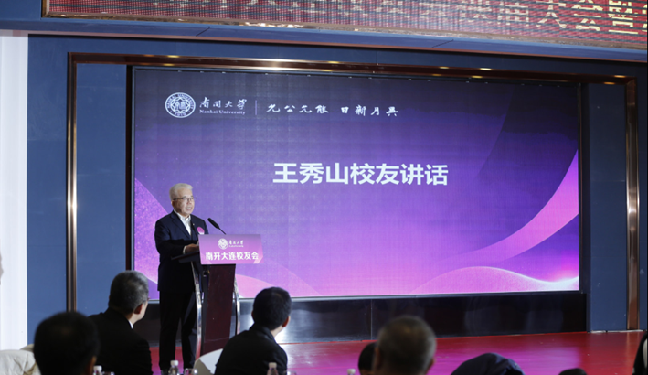 1990级图书情报学专业硕士王秀山校友首先代表大连校友致辞。他深情回溯了从“马蹄湖畔”到“黄渤之滨”的南开足迹,赞誉一代代大连南开人秉持“允公允能,日新月异”之校训,将智慧与汗水挥洒于这片热土,为城市发展注入坚实力量。他充分肯定了以张玉奎院士为代表的第二届理事会在“服务校友、服务母校、服务社会”方面取得的扎实成效,并寄语新一届理事会承前启后,传承薪火、守正创新,凝聚起助推区域高质量发展的南开智慧。
